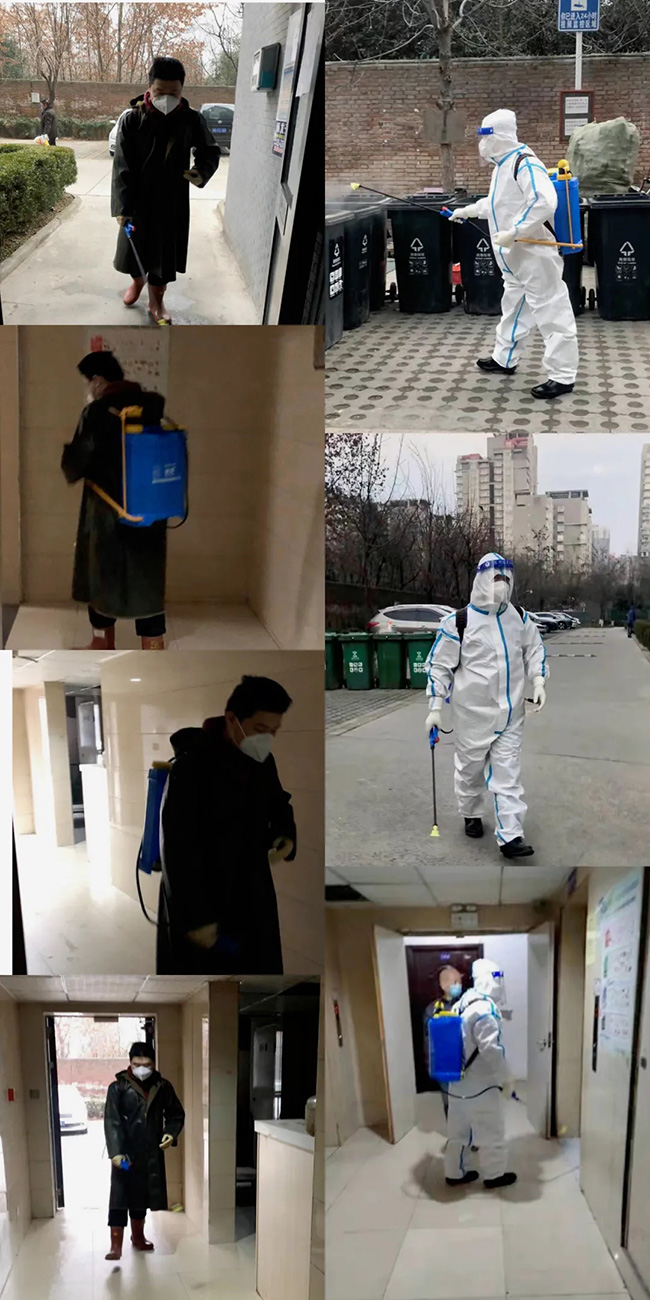冬日的清晨分外寒冷,每一日天還不亮,后勤保障人員已經(jīng)開始辦公樓、公寓樓、食堂和公共區(qū)域的消殺工作,為了確保每一個角落都不放過,消殺人員穿著厚重的防護服背著消毒水一層層的進行消殺,即便是寒冷的冬天,他們的額頭都布滿汗水。為了員工及其家屬的安全,也為了城市盡快擺脫疫情的陰霾,他們認真負責,從沒有一句抱怨。