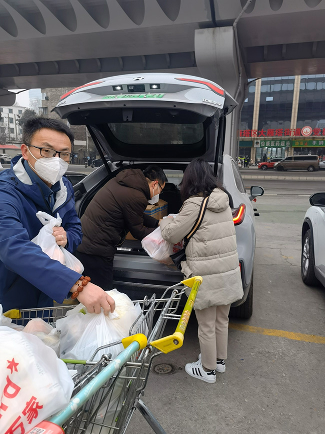 2022年1月6日,受西安院黨政領(lǐng)導(dǎo)的委托,院工會(huì)仔細(xì)摸排封控期間職工家庭情況及困難,想方設(shè)法采購緊缺生活物資。紀(jì)委書記、工會(huì)主席譚文一行帶著西安院黨政領(lǐng)導(dǎo)的殷切囑托,為18戶職工家屬雪中送碳,及時(shí)送去蔬菜、水果、肉蛋奶等生活必需品,并對(duì)他們的辛勤付出及對(duì)工作的理解支持表示感謝。