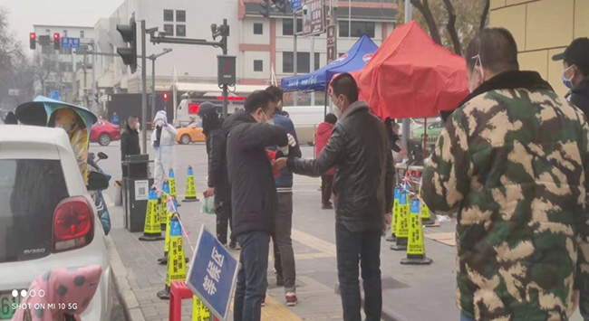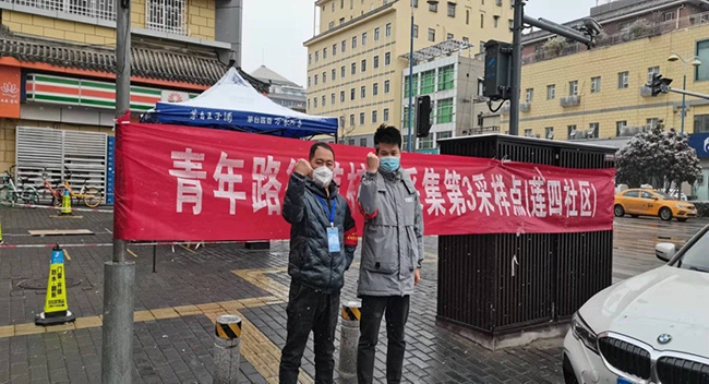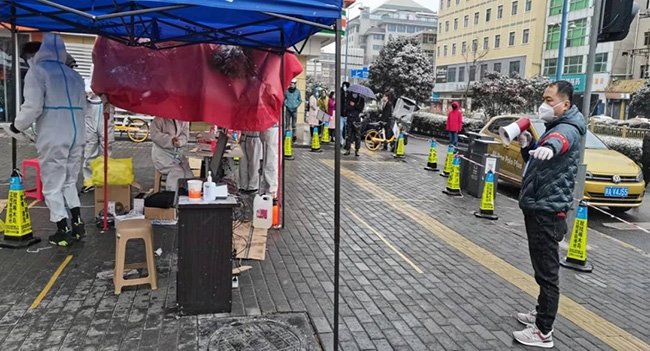 清晨 6 點(diǎn),天空中飄起了雪花,氣溫驟降。省水勘院的黨員志愿者們?cè)缫掩s到青年路街道核酸采集第 3 采集點(diǎn)報(bào)到。他們?cè)谧龊米陨矸雷o(hù)工作的前提下,科學(xué)有序地開展秩序維 護(hù)、測(cè)溫掃碼、詢問(wèn)登記等防疫工作。引導(dǎo)社區(qū)居民戴好口 罩,遵守“一米線”間隔,有序排隊(duì)進(jìn)行核酸檢測(cè)。