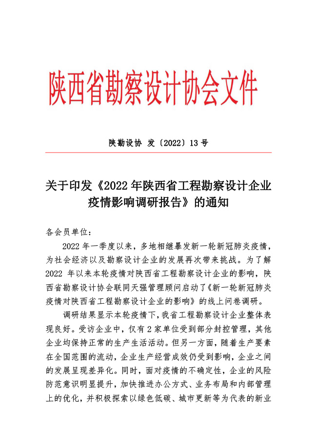 2022年陜西省工程勘察設(shè)計(jì)企業(yè)疫情影響調(diào)研