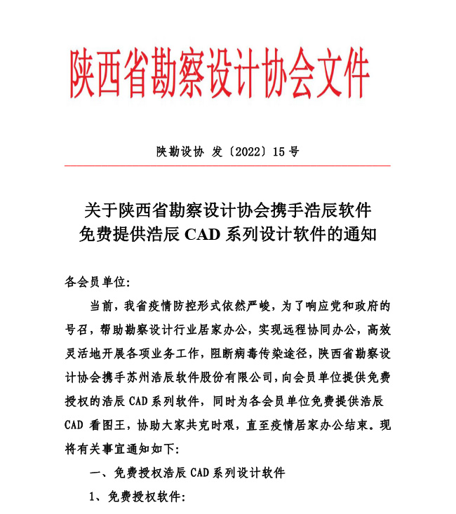 關(guān)于陜西省勘察設(shè)計協(xié)會攜手浩辰軟件免費提供浩辰 CAD 系列設(shè)計軟件的通知