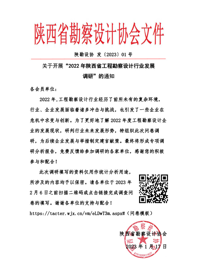 關(guān)于開展“工程勘察設(shè)計行業(yè)發(fā)展調(diào)研”的通知-2023年1號