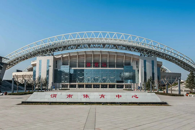 渭南市體育局體育場位于陜西省渭南市,為該市標(biāo)志性建筑之一。體育場鋼罩棚是以主、副拱和拱間桁架為主要受力構(gòu)件的空間管桁架結(jié)構(gòu),主拱跨度290m,屬超大跨度空間鋼結(jié)構(gòu)。我院通過一系列創(chuàng)新技術(shù)措施有效解決了本項目超大跨度空間鋼結(jié)構(gòu)設(shè)計的各類難題和挑戰(zhàn):對整體結(jié)構(gòu)進(jìn)行彈塑性穩(wěn)定分析和性能設(shè)計;對多桿件小角度交匯節(jié)點(diǎn)等關(guān)鍵節(jié)點(diǎn)進(jìn)行有限元分析并采取局部加強(qiáng)措施;對幾何關(guān)系復(fù)雜、受力集中的拱腳采用可扭轉(zhuǎn)的鉸支座,并對鉸支座進(jìn)行有限元分析;通過拱腳墩臺周邊地基處理及抗推樁解決巨大的推力問題;進(jìn)行全過程健康監(jiān)測,驗證設(shè)計的可靠性和安全性。