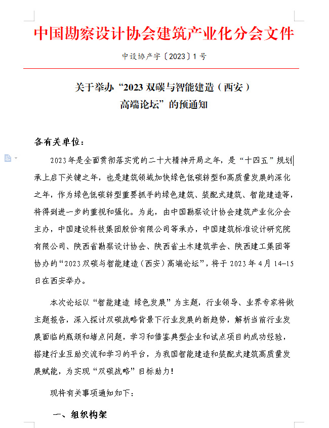 關于舉辦“2023雙碳與智能建造(西安)高端論壇”的預通知