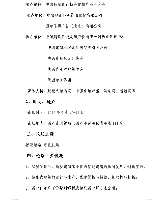 2023雙碳與智能建造(西安)高端論壇會議議程(擬)