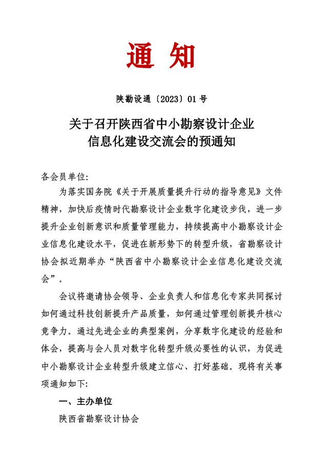 關(guān)于召開(kāi)陜西省中小勘察設(shè)計(jì)企業(yè)信息化建設(shè)交流會(huì)的預(yù)通知