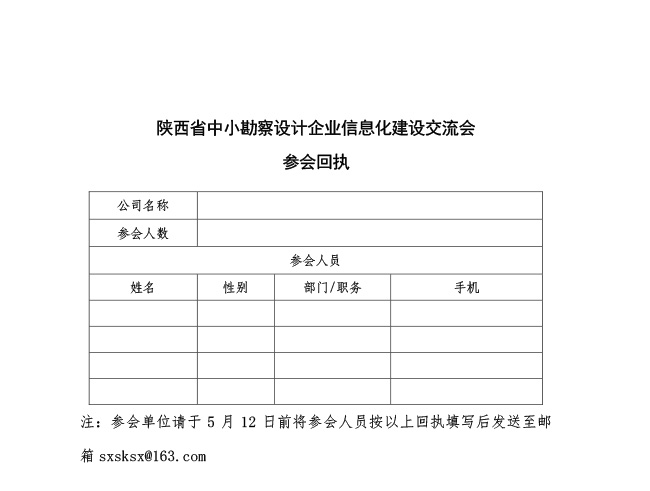 陜西省中小勘察設(shè)計(jì)企業(yè)信息化建設(shè)交流會(huì)參會(huì)回執(zhí)