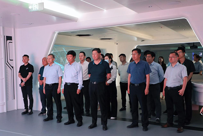 會議開始前,講解員為陜勘協(xié)領(lǐng)導(dǎo)一行詳細地從綠色生態(tài)、數(shù)字科技、智慧人文和公司文化等角度介紹了這棟綠色、生態(tài)、健康、節(jié)能的現(xiàn)代化辦公大廈。其中,講解員重點介紹了這棟新型數(shù)字建筑樣板中的廣聯(lián)達數(shù)字建筑展廳、數(shù)字運維系統(tǒng)、BIM及IOT技術(shù)的應(yīng)用等內(nèi)容,充分展示了數(shù)字建筑引擎下的行業(yè)未來。