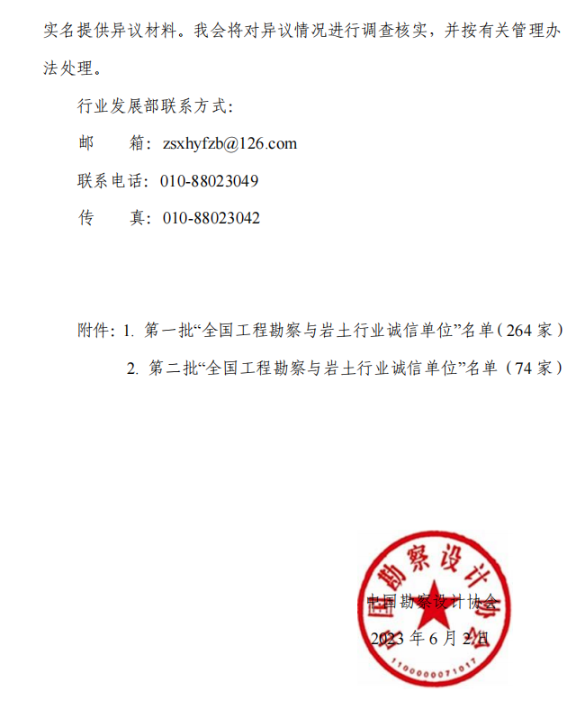 第二批“全國(guó)工程勘察與巖土行業(yè)誠(chéng)信單位”名單(74家)
