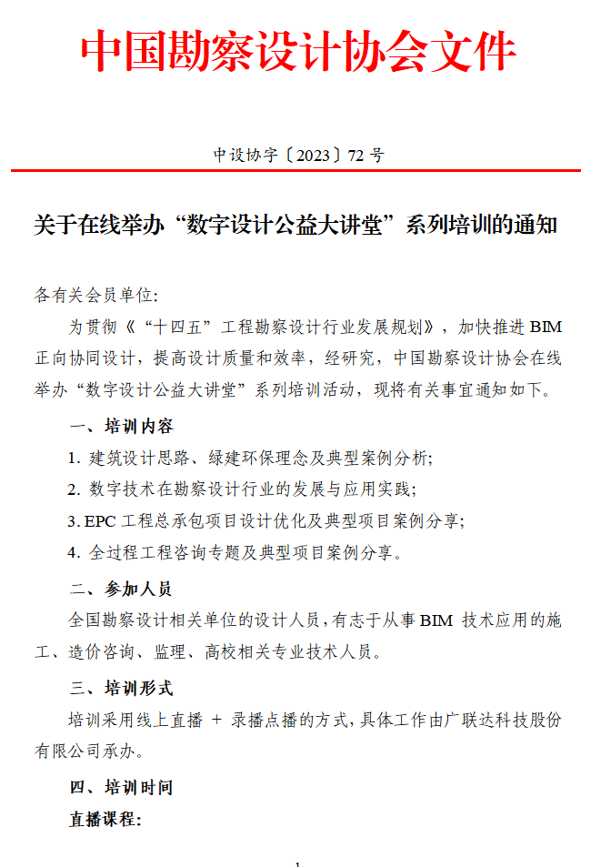 關(guān)于在線舉辦“數(shù)字設(shè)計(jì)公益大講堂”系列培訓(xùn)的通知 中設(shè)協(xié)字〔2023〕72號(hào)