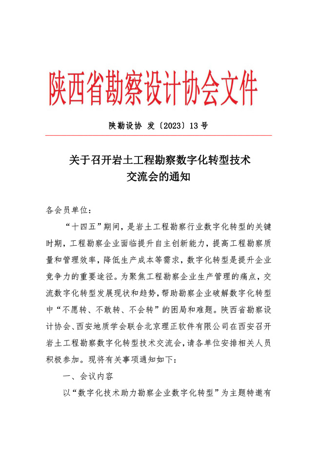 陜勘設(shè)協(xié)發(fā)〔2023〕13號(hào) 關(guān)于召開巖土工程勘察數(shù)字化轉(zhuǎn)型技術(shù)交流會(huì)的通知