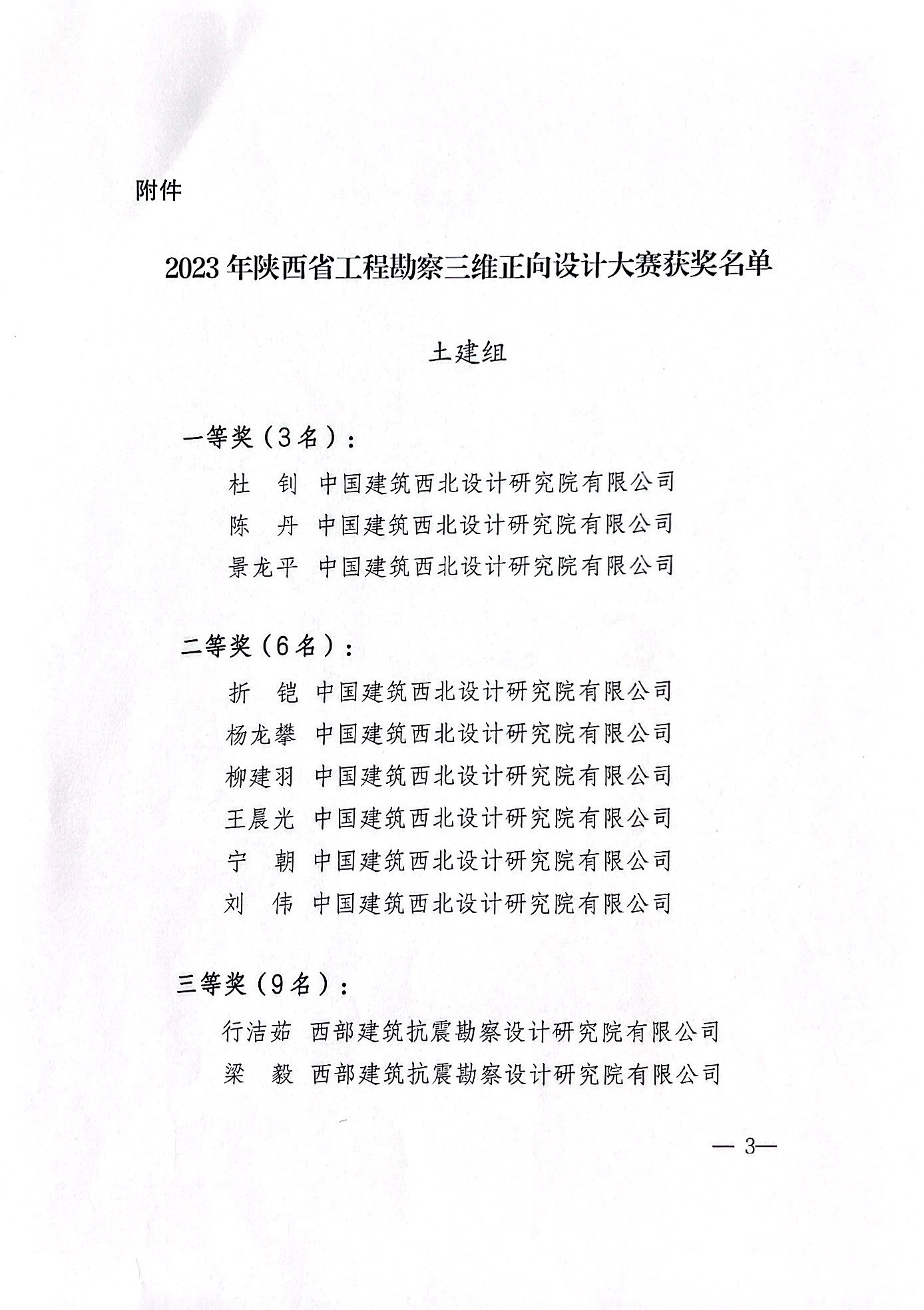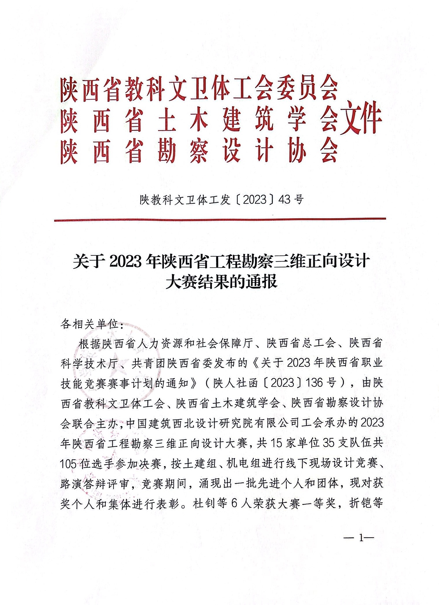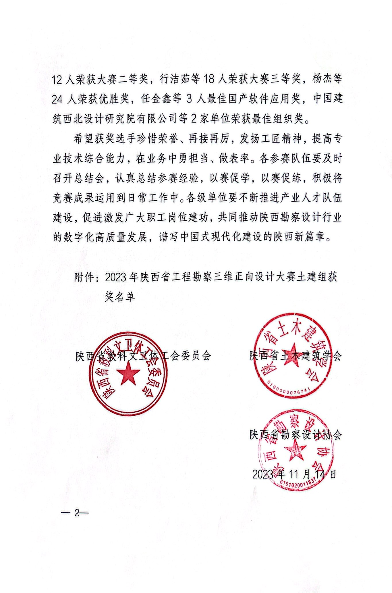 關(guān)于2023年陜西省工程勘察三維正向設(shè)計大賽結(jié)果的通報
