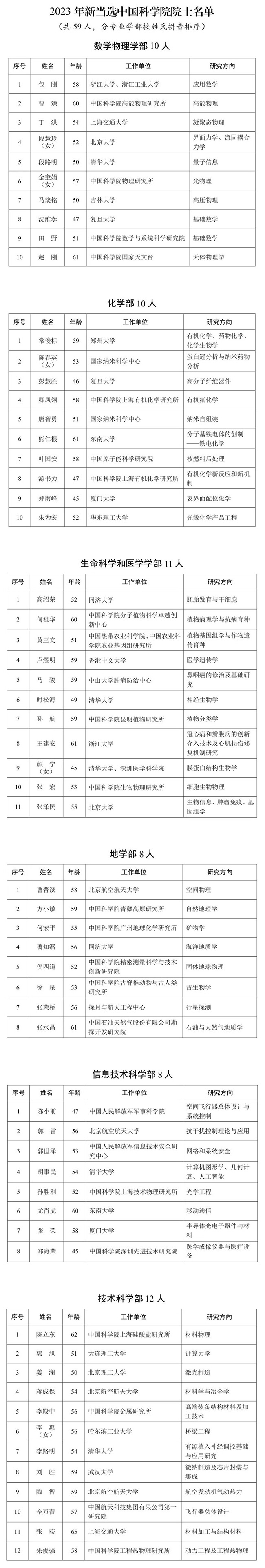 11 月 22 日,2023 年兩院院士增選結(jié)果正式揭曉。中國(guó)科學(xué)院增選院士 59 人,中國(guó)工程院增選院士 74 人。