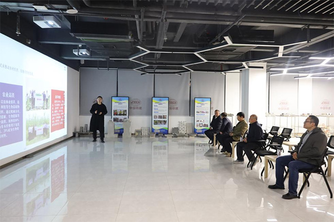 張文亮理事長一行前往公司五樓“雙碳”實踐研究中心,參觀了“星辰大?!北尘皦?、廢物再生骨料、UHPC超高性能混凝土預制構(gòu)件及新科研技術(shù),觀看了海綿城市、BIM技術(shù)應(yīng)用等領(lǐng)域的視頻展示。
