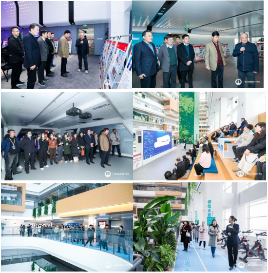 參會領(lǐng)導(dǎo)和嘉賓首先參觀了勘察設(shè)計大師優(yōu)秀作品展,劉廣盈副秘書長向大家逐一介紹參展大師的相關(guān)情況及優(yōu)秀作品,隨后參觀了廣聯(lián)達(dá)自建自營的第四個工程項目-廣聯(lián)達(dá)西安數(shù)字建筑研發(fā)大廈。講解員為各位嘉賓詳細(xì)地介紹了這座現(xiàn)代化辦公大廈中的設(shè)計理念、綠色生態(tài)、數(shù)字運維、智慧展廳、人文健康等特色,重點介紹了BIM、IOT、AI等核心技術(shù)在大廈建設(shè)運維中的應(yīng)用,充分展示了數(shù)字引擎下的行業(yè)未來。