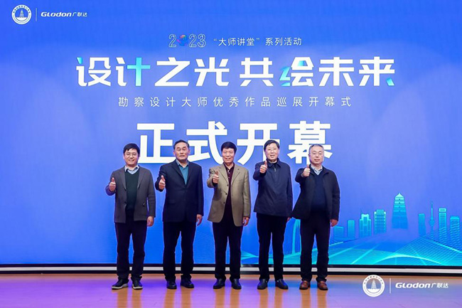 在所有與會代表的見證下,張文亮理事長、茹廣生書記、周敏大師、雷振東大師、尉林濤總經(jīng)理共同為本次勘察設(shè)計大師優(yōu)秀作品巡展揭幕。