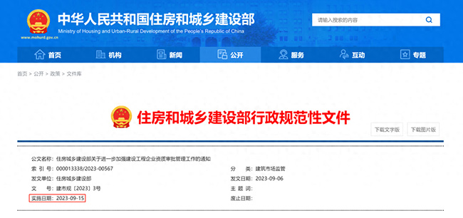 住建部《關(guān)于進一步加強建設(shè)工程企業(yè)資質(zhì)審批管理工作的通知》(建市規(guī)〔2023〕3號)提出:
