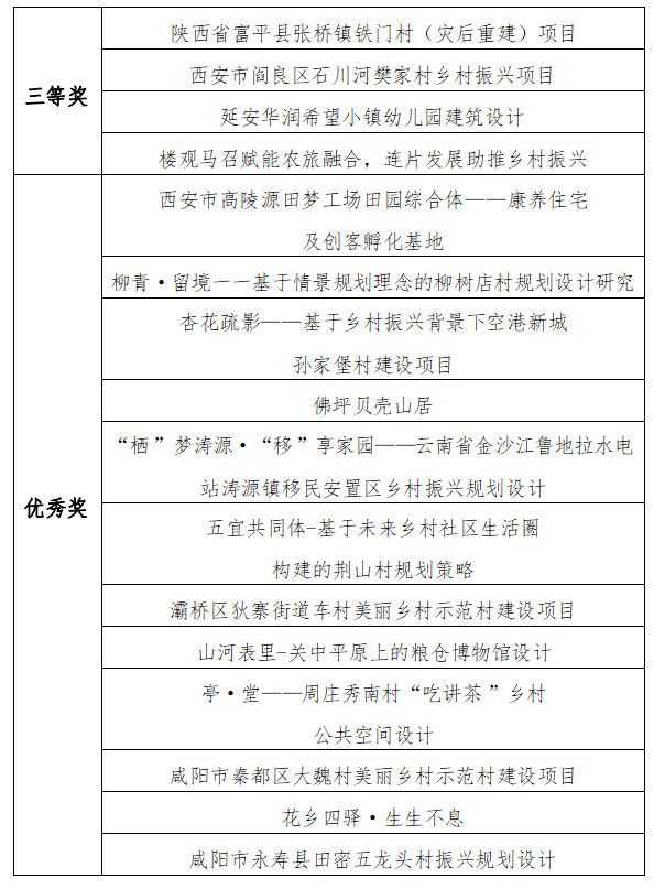 近日,由團省委、省科技廳、省住建廳等多家單位聯(lián)合舉辦的“長安銀行杯”陜西省鄉(xiāng)村振興青年創(chuàng)新創(chuàng)業(yè)系列大賽圓滿落幕。大賽設(shè)有青年創(chuàng)意創(chuàng)新賽、青年建筑規(guī)劃設(shè)計賽、青年短視頻創(chuàng)意賽、“秦青優(yōu)惠貸”助農(nóng)項目大賽四個賽道。其中,陜西省勘察設(shè)計協(xié)會協(xié)辦陜西省鄉(xiāng)村振興青年創(chuàng)新創(chuàng)業(yè)系列大賽建筑規(guī)劃設(shè)計賽,并推薦專家評委。