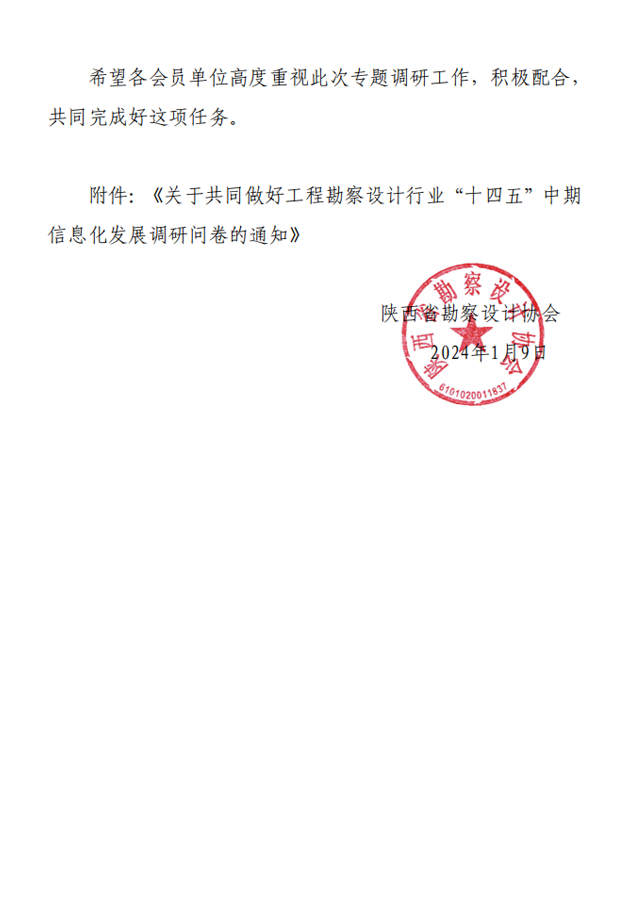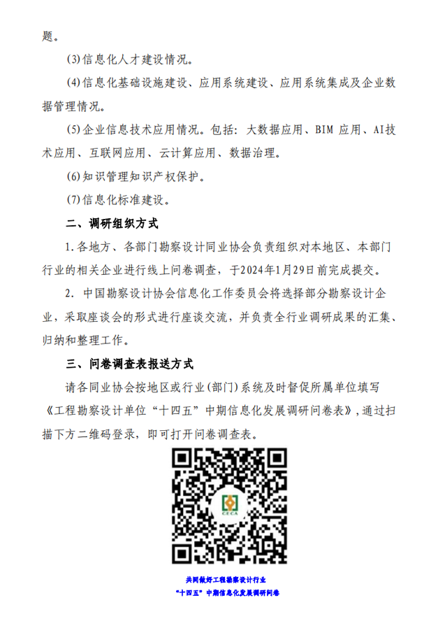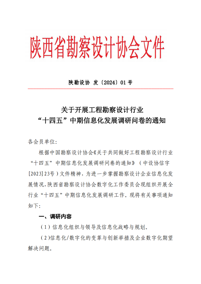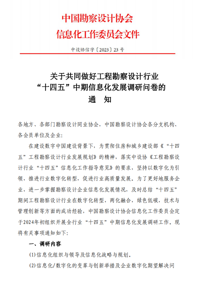 關(guān)于開展工程勘察設(shè)計(jì)行業(yè) “十四五”中期信息化發(fā)展調(diào)研問卷的通知