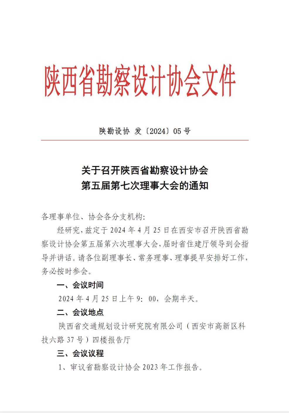 關(guān)于召開陜西省勘察設(shè)計(jì)協(xié)會第五屆第七次理事大會的通知