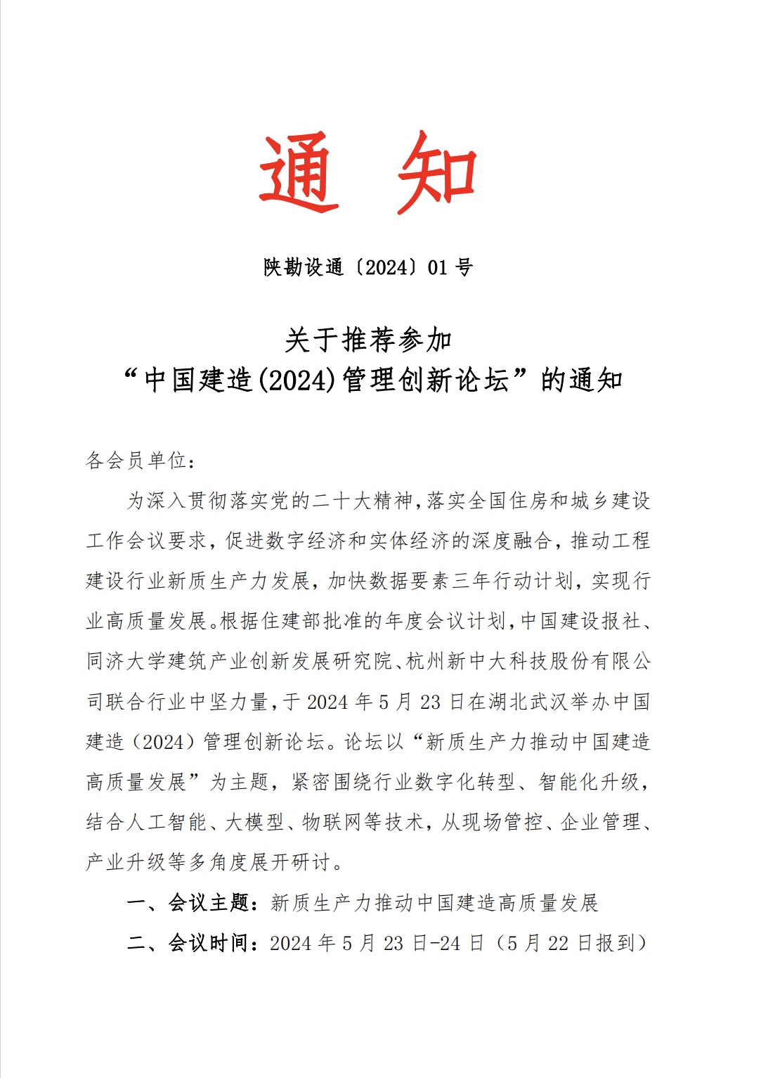 關(guān)于推薦參加“中國建造(2024)管理創(chuàng)新論壇”的通知