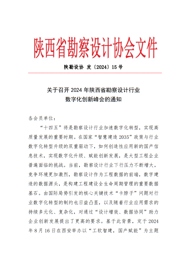 關于召開 2024 年陜西省勘察設計行業(yè)數(shù)字化創(chuàng)新峰會的通知