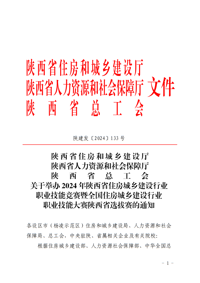 關(guān)于舉辦2024年陜西省住房城鄉(xiāng)建設(shè)行業(yè)職業(yè)技能競賽暨全國住房城鄉(xiāng)建設(shè)行業(yè)職業(yè)技能大賽陜西省選拔賽的通知.pdf