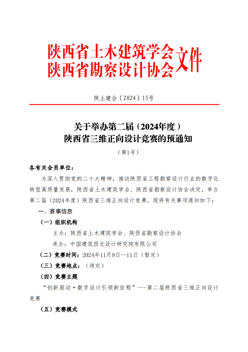 關(guān)于舉辦第二屆(2024年度)陜西省三維正向設(shè)計競賽的預(yù)通知