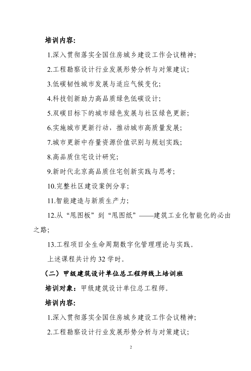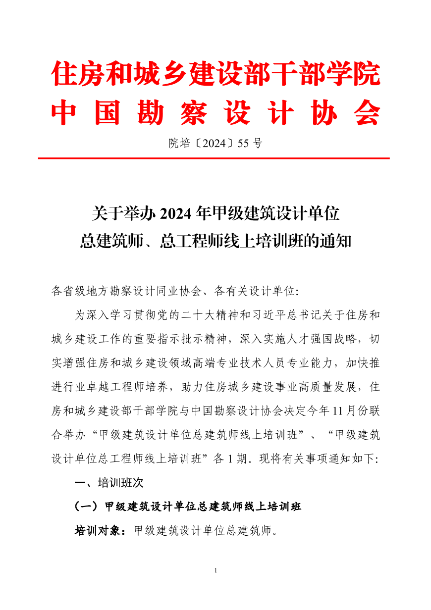 住房和城鄉(xiāng)建設(shè)部干部學(xué)院中國勘察設(shè)計協(xié)會關(guān)于舉辦2024年甲級建筑設(shè)計單位總建筑師、總工程師線上培訓(xùn)班的通知
