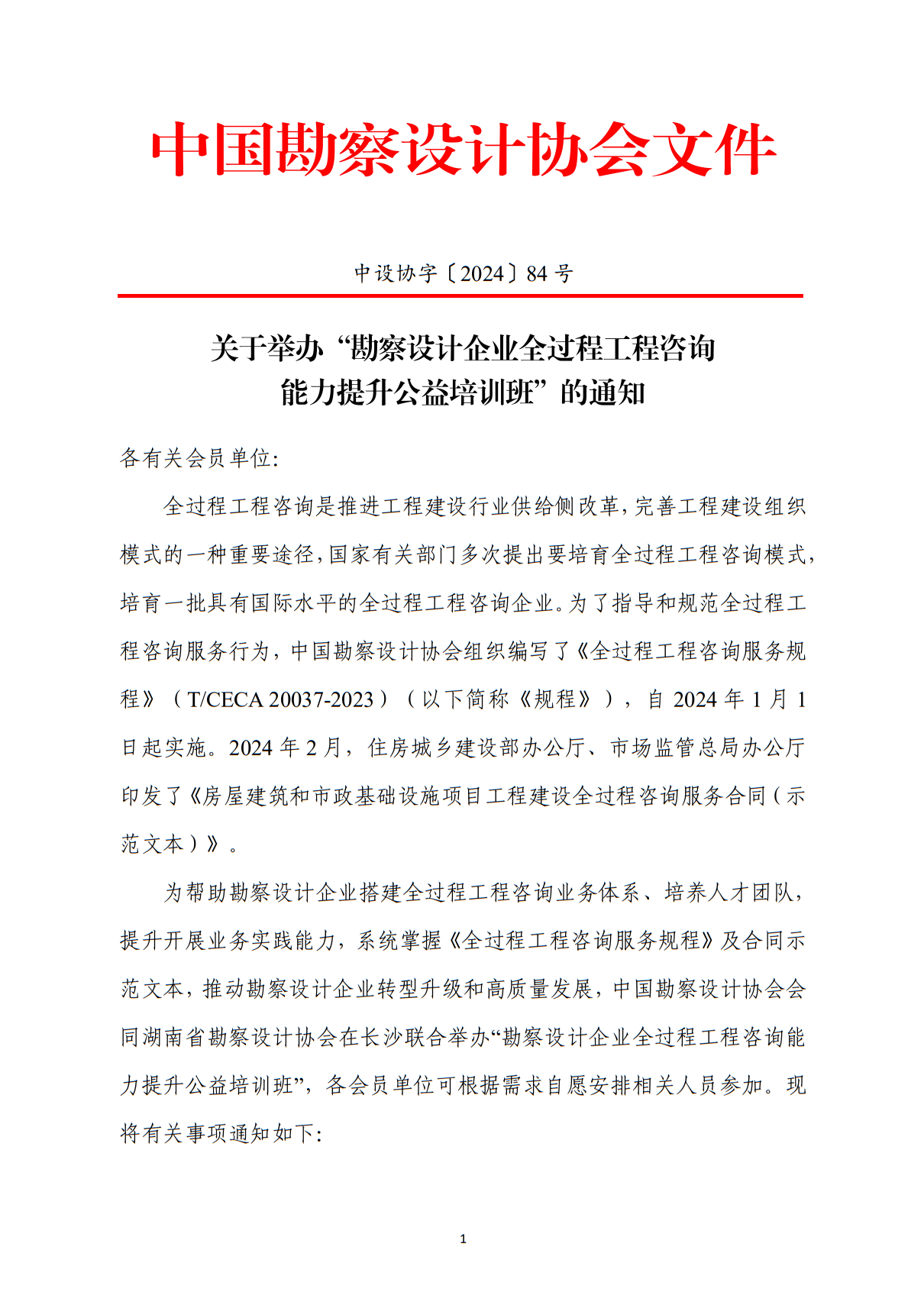 中設(shè)協(xié)字〔2024〕84 號:關(guān)于舉辦”勘察設(shè)計企業(yè)全過程工程咨詢能力提升公益培訓(xùn)班”的通知.pdf