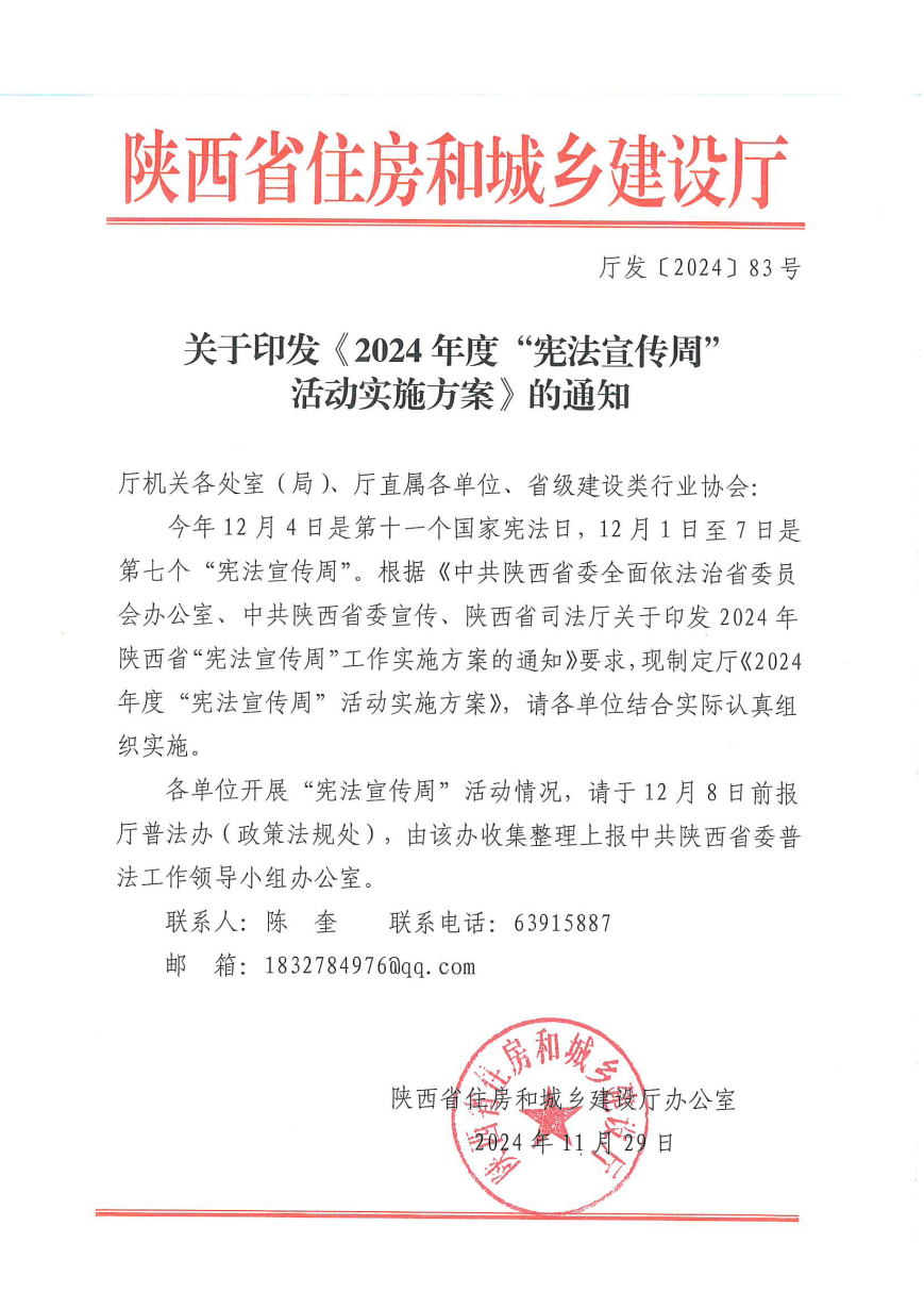 關(guān)于印發(fā)《2024年度“憲法宣傳周”活動(dòng)實(shí)施方案》的通知