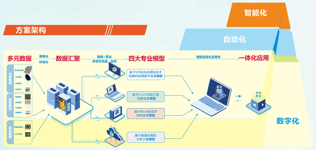 該方案以工程數(shù)據(jù)中心為核心,創(chuàng)新性地集成了地質(zhì)信息模型、結(jié)構(gòu)分析模型、施工模擬模型和運維監(jiān)測模型四大數(shù)字化模塊,實現(xiàn)了從數(shù)據(jù)采集、模型構(gòu)建到智能應(yīng)用的完整閉環(huán)。經(jīng)多個重大項目驗證,該技術(shù)使巖土工程方案設(shè)計效率提升40%,施工風(fēng)險預(yù)警準確率達92%,有效解決了傳統(tǒng)工程中數(shù)據(jù)孤島、協(xié)同困難等痛點問題。
