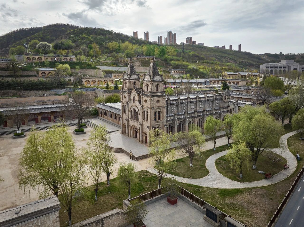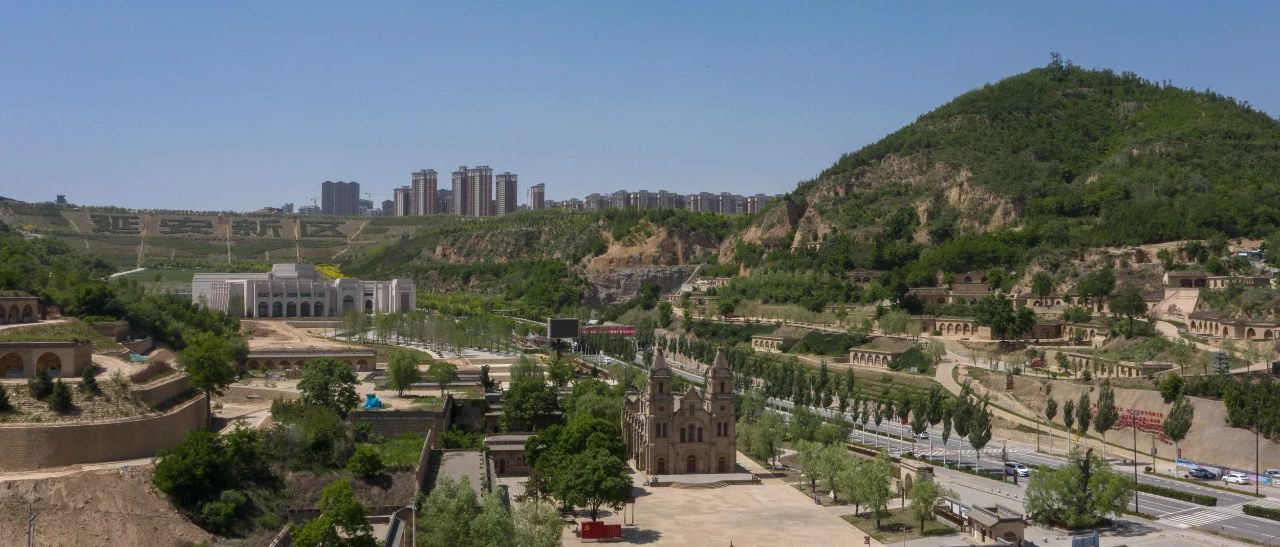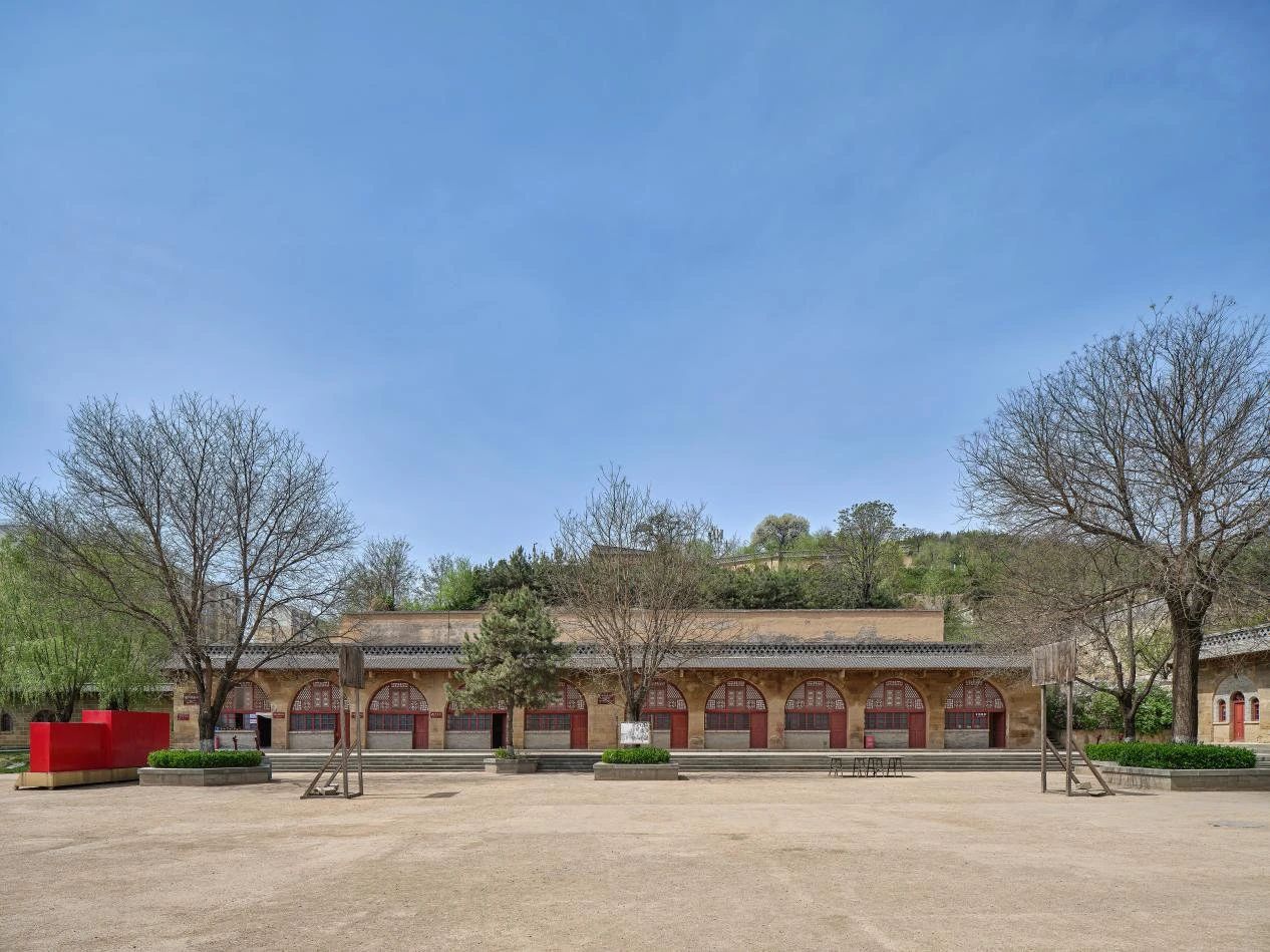 位于園區(qū)中軸線的核心位置,在充分尊重核心保護(hù)區(qū)內(nèi)的文保建筑(教堂及魯藝學(xué)院舊址1—7號窯洞)的基礎(chǔ)上,我們對區(qū)內(nèi)的環(huán)境景觀進(jìn)行了整治。同時在保留現(xiàn)狀喬木的基礎(chǔ)上,對綠化面積進(jìn)行增補,力求真實地再現(xiàn)魯藝當(dāng)年的風(fēng)貌。