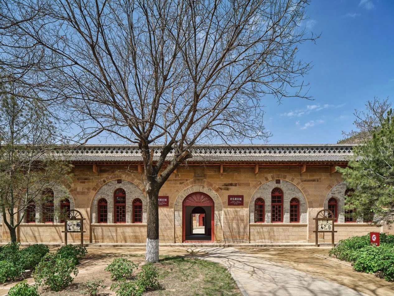 該紀(jì)念館建筑采用中軸對稱的形式,方形輪廓環(huán)抱一個圓形的廣場。游客先被引至紀(jì)念館前的圓形廣場,之后再進(jìn)入紀(jì)念館建筑內(nèi)部,在有限的用地中感受豐富的建筑空間層次。紀(jì)念館的建筑風(fēng)格借鑒延安時期棗園、楊家?guī)X、邊區(qū)大禮堂等紅色歷史建筑風(fēng)格,同時延續(xù)陜北地域窯洞民居文脈,并吸取了核心保護(hù)區(qū)保護(hù)建筑的元素,使紅色歷史建筑元素和陜北窯洞肌理有機地結(jié)合在一起。