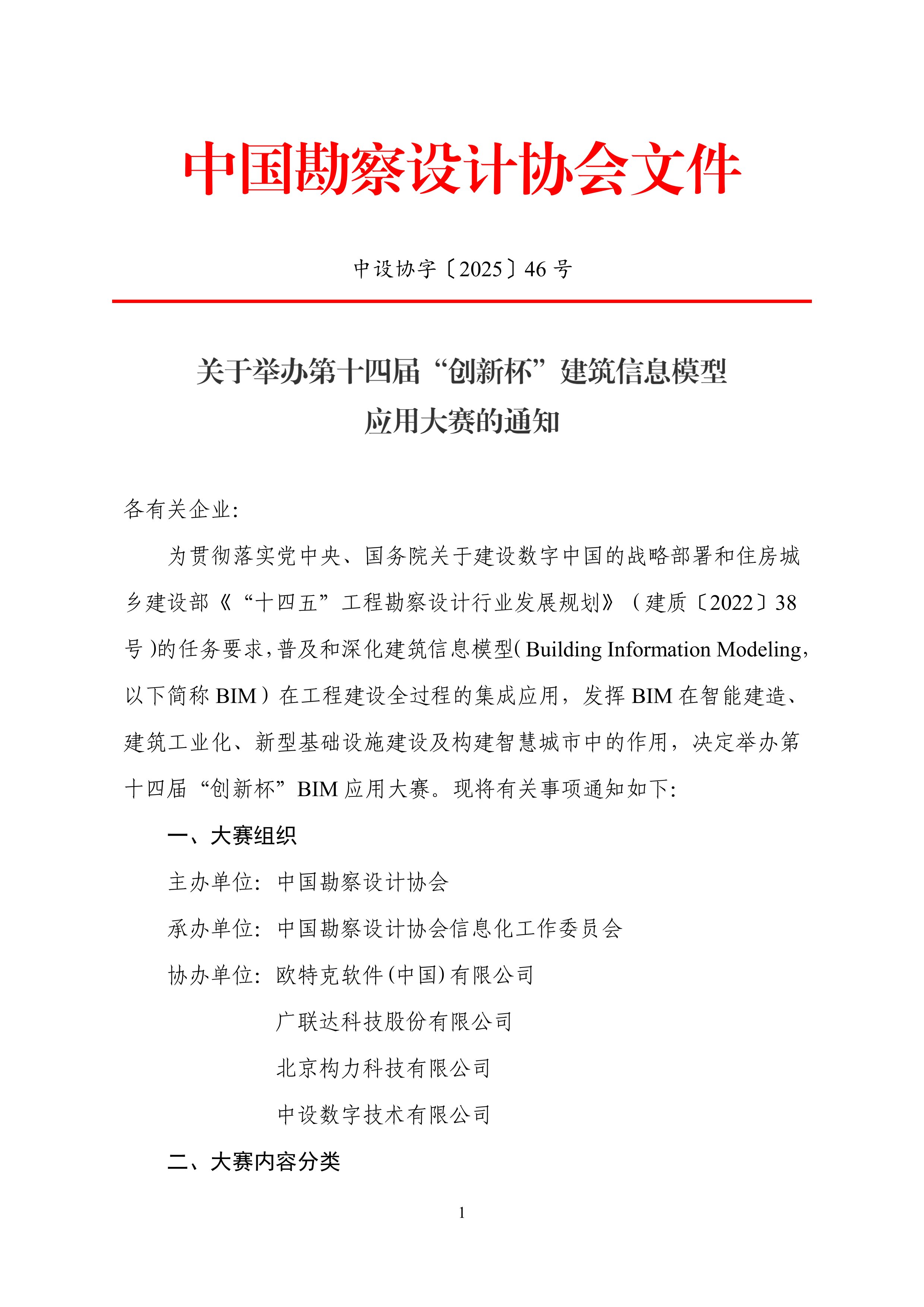 中設協(xié)2025-46號 舉辦第十四屆創(chuàng)新杯建筑信息模型應用大賽的通知