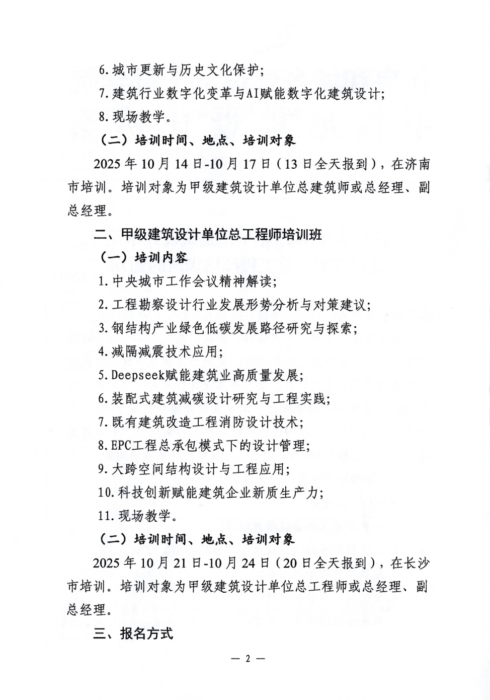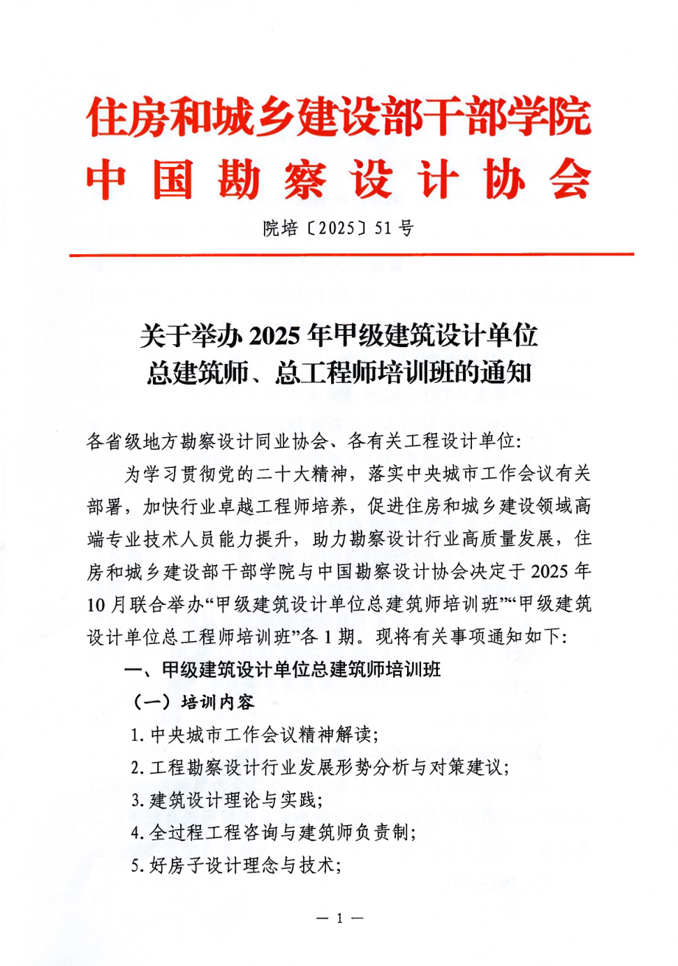 關(guān)于舉辦2025年甲級建筑設(shè)計(jì)單位總建筑師、總工程師培訓(xùn)班的通知