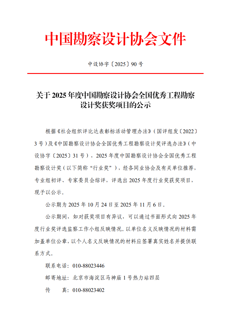 關(guān)于2025年度中國勘察設(shè)計(jì)協(xié)會(huì)全國優(yōu)秀工程勘察設(shè)計(jì)獎(jiǎng)獲獎(jiǎng)項(xiàng)目的公示
