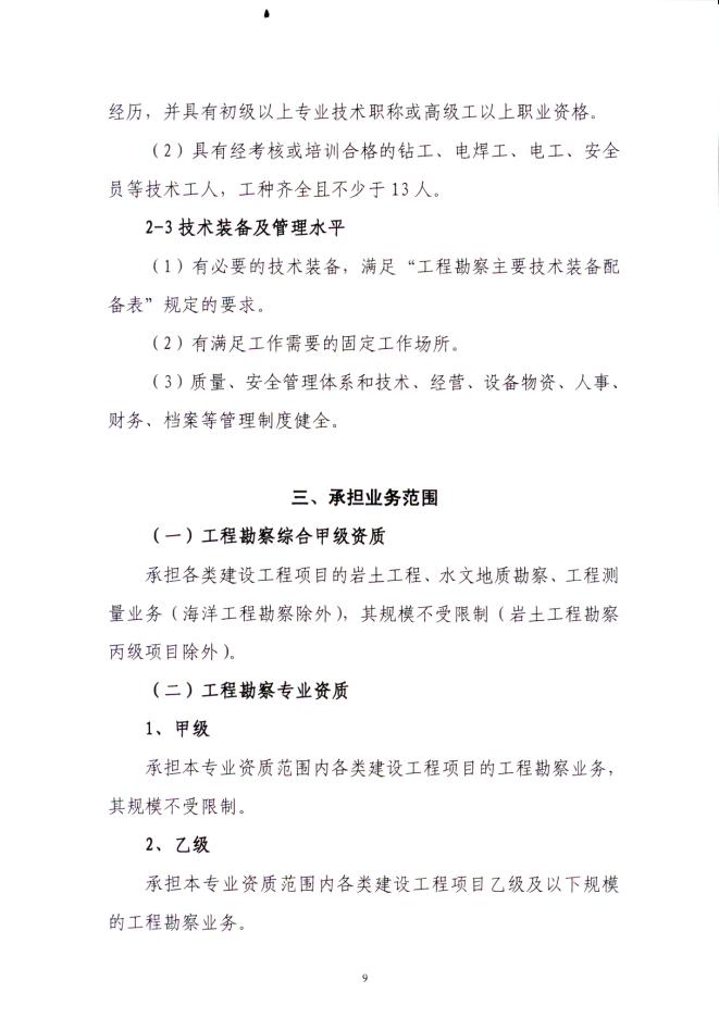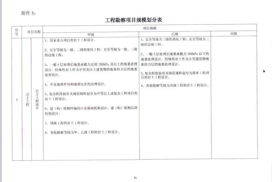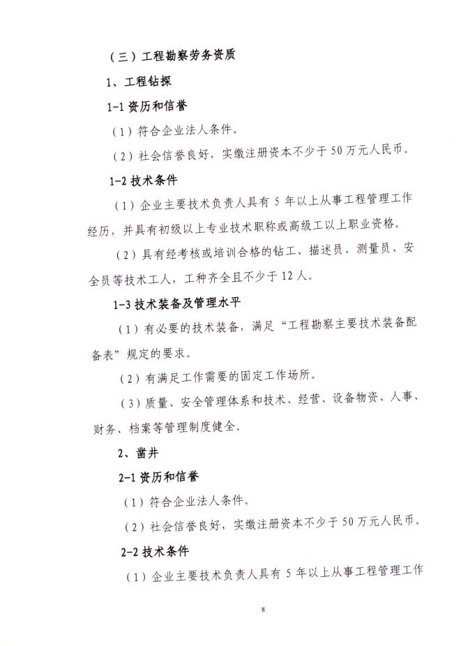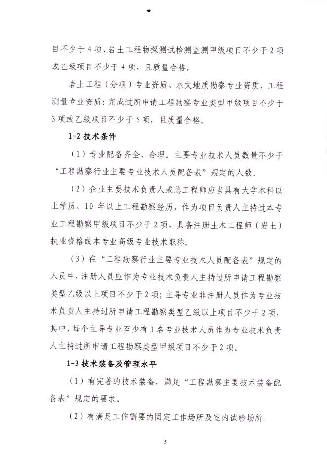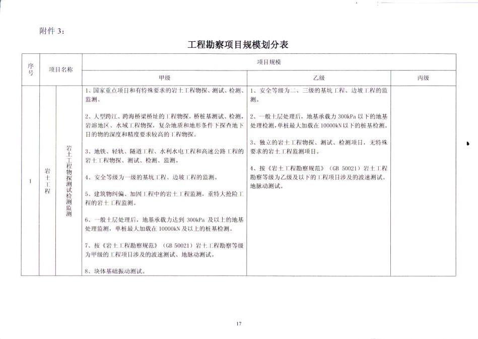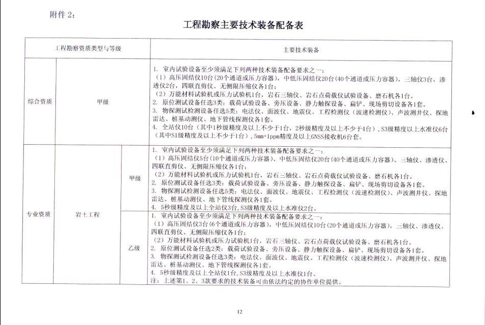 根據(jù)《建設(shè)工程勘察設(shè)計管理條例》和《建設(shè)工程勘察設(shè)計資質(zhì)管理規(guī)定》,我部制定了《工程勘察資質(zhì)標(biāo)準(zhǔn)》,現(xiàn)印發(fā)給你們,請遵照執(zhí)行。原《工程勘察資質(zhì)分級標(biāo)準(zhǔn)》(建設(shè)[2001]22號)同時廢止。執(zhí)行中有何問題,請與我部建筑市場監(jiān)管司聯(lián)系。