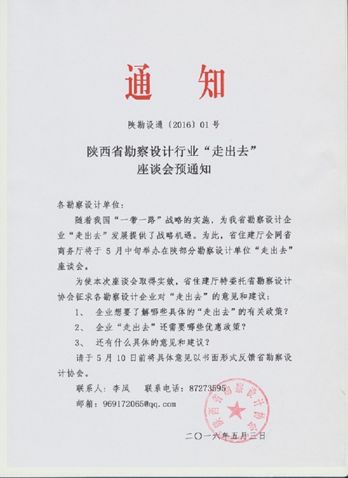 陜西省勘察設(shè)計(jì)行業(yè)“走出去”座談會(huì)預(yù)通知