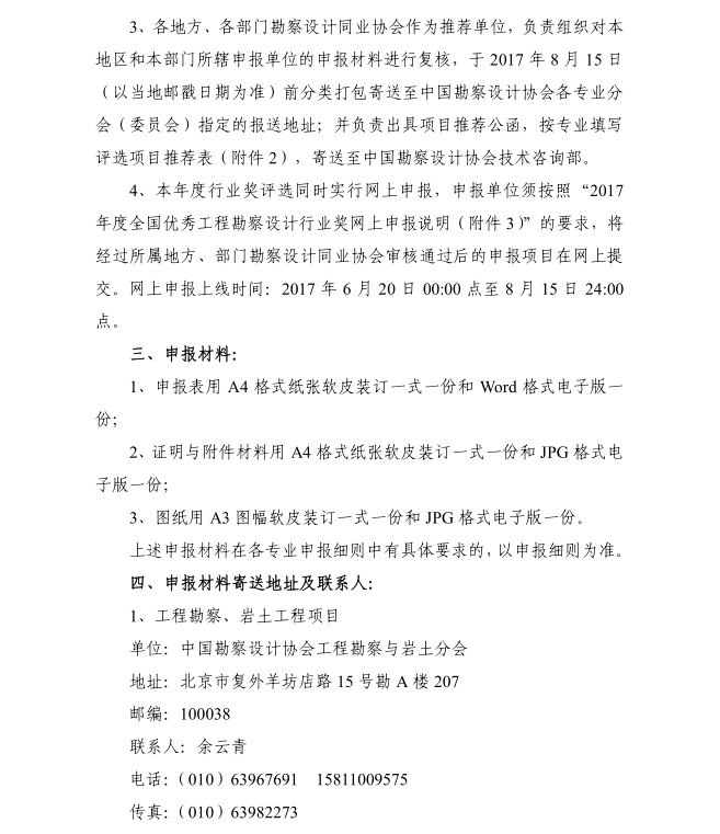 關(guān)于評選 2017 年度 全國優(yōu)秀工程勘察設(shè)計行業(yè)獎的通知
