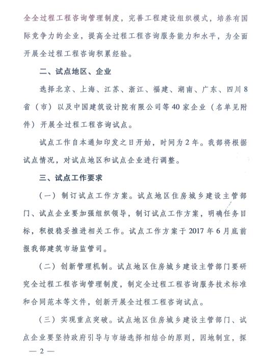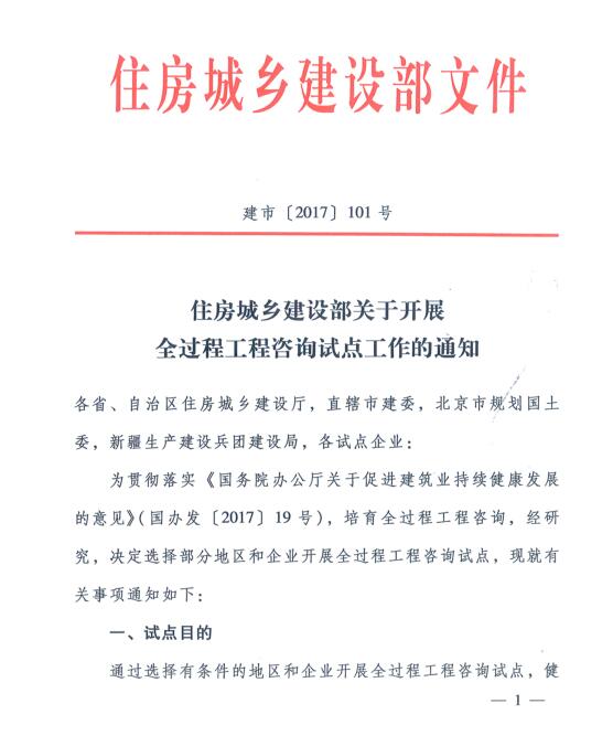 住房城鄉(xiāng)建設部關于開展全過程工程咨詢試點工作的通知
