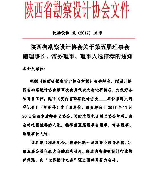 陜西省勘察設計協(xié)會文件陜勘設協(xié)發(fā) [2017] 16號