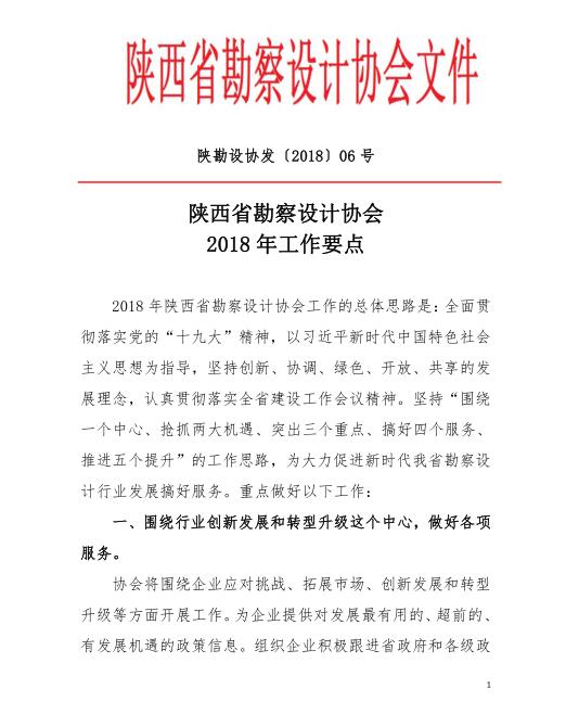 陜西省勘察設(shè)計(jì)協(xié)會(huì)2018年工作要點(diǎn) 陜勘設(shè)協(xié)發(fā)[2018]06號(hào)