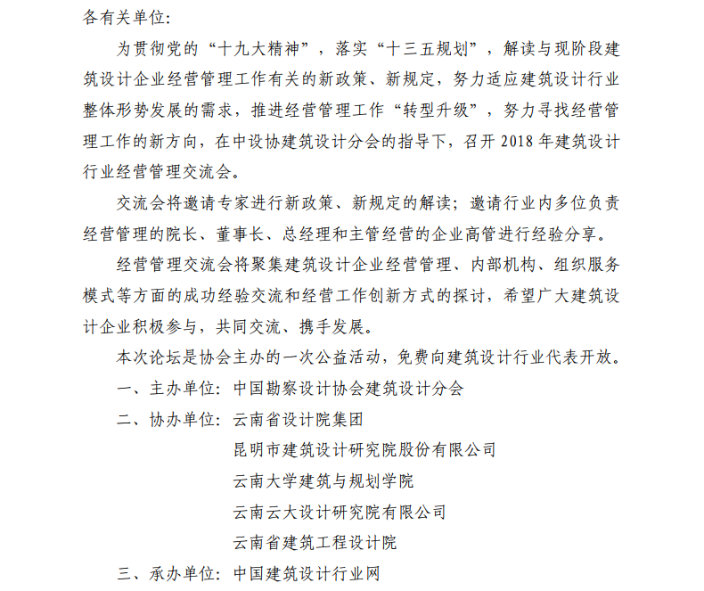 關(guān)于召開 2018 年建筑設(shè)計(jì)行業(yè)經(jīng)營(yíng)管理交流會(huì)的通知