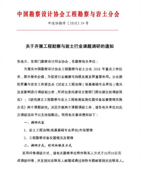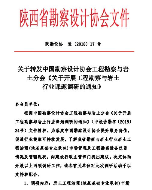 關(guān)于轉(zhuǎn)發(fā)中國勘察設(shè)計協(xié)會工程勘察與巖土分會《關(guān)于開展工程勘察與巖土行業(yè)課題調(diào)研的通知》