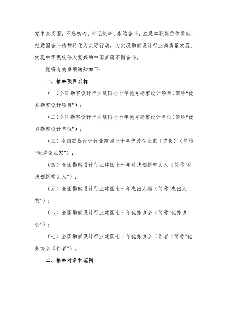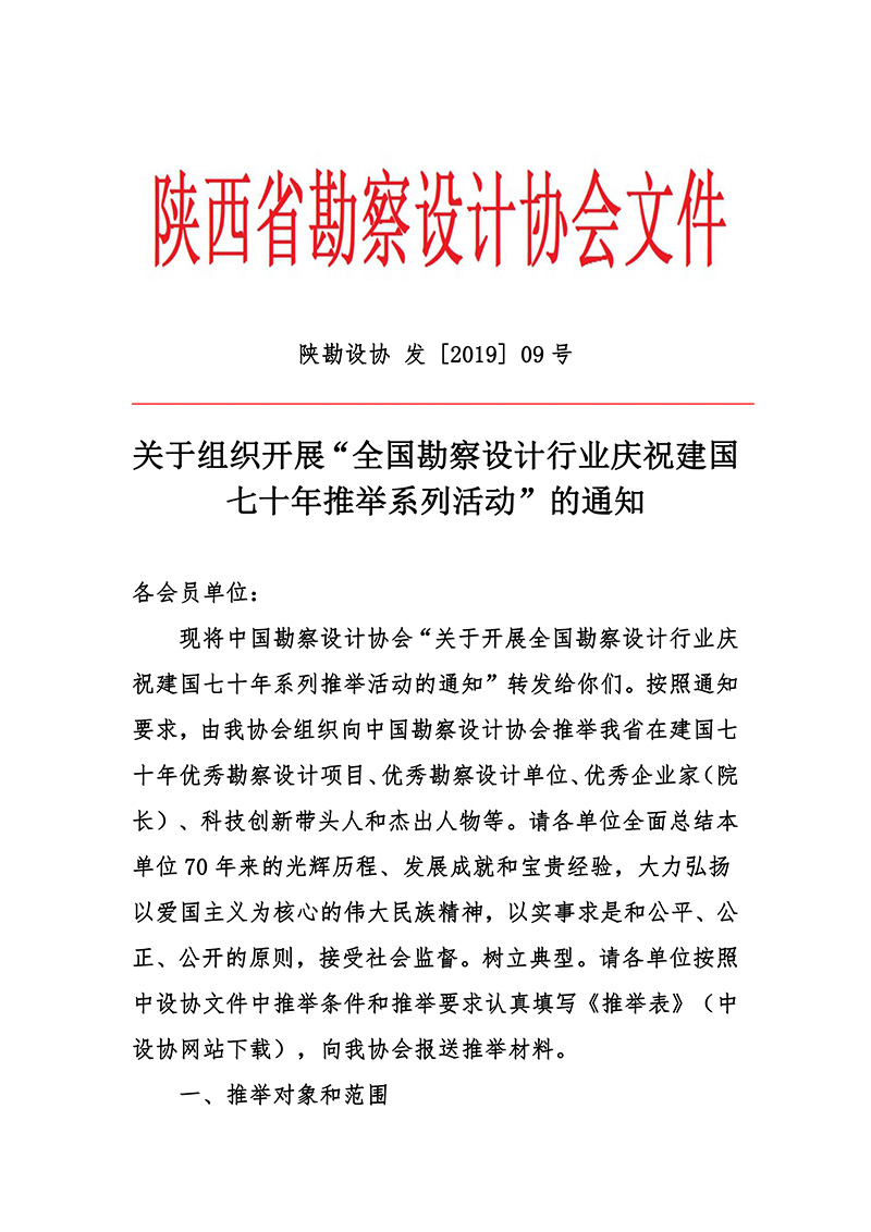 關于組織開展“全國勘察設計行業(yè)慶祝建國七十年推舉系列活動”的通知