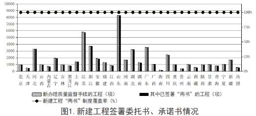 2019年第三季度,全國新辦理質(zhì)量監(jiān)督手續(xù)的工程共56618項,其中,已簽署法定代表人授權(quán)書、工程質(zhì)量終身責(zé)任承諾書的工程有56616項,覆蓋率為99.99%,除內(nèi)蒙古自治區(qū)外,其他30個?。▍^(qū)、市)和新疆生產(chǎn)建設(shè)兵團覆蓋率均達100%。