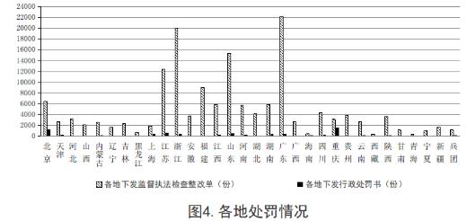 2019年第三季度,各地共下發(fā)監(jiān)督執(zhí)法檢查整改單154996份、行政處罰書8469份,處罰單位7403個,處罰人員1818名。其中,省級住房和城鄉(xiāng)建設(shè)主管部門下發(fā)監(jiān)督執(zhí)法檢查整改單6098份、行政處罰書534份,處罰單位354個,處罰人員217名;市縣級住房和城鄉(xiāng)建設(shè)主管部門下發(fā)監(jiān)督執(zhí)法檢查整改單148898份、行政處罰書7935份,處罰單位7049個,處罰人員1601名。從行政處罰數(shù)量看,重慶市、北京市處罰力度較大。