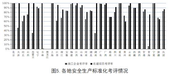 截至2019年第三季度,各地建筑施工企業(yè)安全生產(chǎn)標(biāo)準(zhǔn)化考評率平均為76.06%,北京市、吉林省、上海市、重慶市、陜西省、寧夏回族自治區(qū)等6個?。▍^(qū)、市)考評率達100%;在建房屋市政工程項目考評率平均為84.73%,北京市、天津市、山西省、內(nèi)蒙古自治區(qū)、上海市、福建省、江西省、湖南省、廣西壯族自治區(qū)、重慶市、云南省、陜西省、寧夏回族自治區(qū)等13個省(區(qū)、市)考評率達100%。