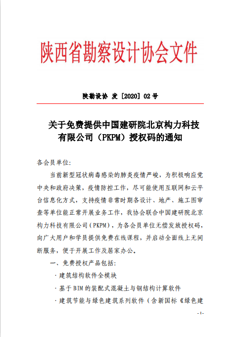 關(guān)于免費(fèi)提供中國(guó)建研院北京構(gòu)力科技有限公司(PKPM)授權(quán)碼的通知